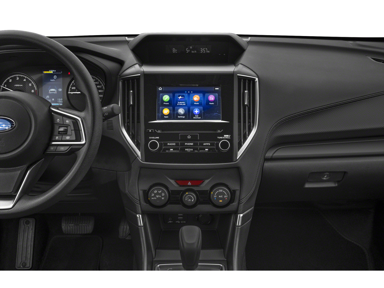 - Radio: Subaru Starlink 6.5" Multimedia Plus System -inc: AM/FM stereo HD Radio w/single-disc CD player w/MP3/WMA/CRR/RW file capability, multi-touch gesture high resolution display, voice activated controls, Bluetooth® audio streaming connectivity and hands-free phone connectivity, Bluetooth® hands-free SMS text messaging connectivity, iPod control capability, rear-vision camera display, SiriusXM All Access radio and Travel Link (4 months free trial/subscription required after), smartphone integration: AHA, Android Auto, CarPlay and Pandora, Starlink cloud applications: refer to subaru.com for app availability, steering wheel controls, 4 speakers, 3.5mm auxiliary input jack, dual USB input ports and body color roof mounted antenna